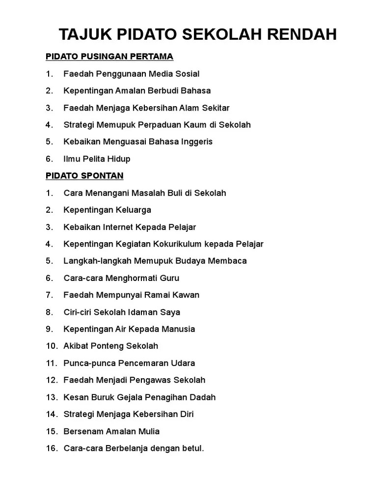 Tajuk Pidato Sekolah Rendah / Karangan Pertandingan Pidato Kemerdekaan Yang Bagus Dan Bermanfaat Kemilau Danau Menyilau Mata Studocu